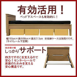 ◆◇◆送料無料・玄関渡し◆◇◆ すのこタイプで通気性に優れたベッドフレーム ベッド下のスペースも有効活用できるよう、高さ21.5cmまでの収納ボックスを設置できます。