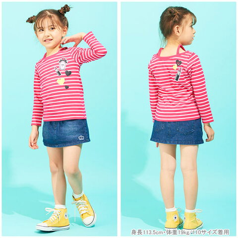 本体:綿100%リブ:綿95%,ポリウレタン5%アップリケ部位:ポリエステル65%,綿35% 天竺 肩開き プリント/アップリケ ※写真のプリント位置と多少の誤差が生じる場合があります。