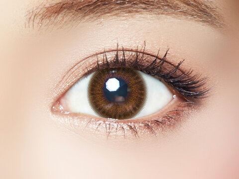 処方箋不要で買えるカラコンオレンジブラウンがキラッと輝き、さりげなく立体感のある瞳に。
