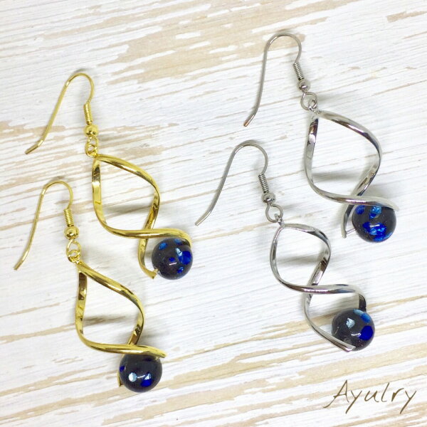 商 品 情 報*************** ■色 ホタル玉=青系色・黒 ポスト部分・その他パーツ=ゴールド・シルバー (注意!モニターの発色によって実際の物と異なる場合があります) ■サイズ 重さ=約6g 長さ=約5.7cm ■ポスト 基本ポスト=金属アレルギー対応サージカルステンレスフック サージカルステンレスは医療用メスにも使われている安心な金属です ポストの変更指定がない場合はサージカルステンレスフックとなります サージカルステンレスピン、純チタン、樹脂、ノンホール(樹脂)、イヤリング(ニッケルフリー)などへのポスト変更も無料です 変更希望の場合はポスト一覧画像から番号などでご指定下さい (注意!フックをピンに変更すると短く、ピンをフックに変更すると長くなります) ■メール便送料無料について メール便送料無料はメール便選択時のみ有効となります 宅配便を選択の場合はご注文後に有料となりますのでご注意ください 複数のご注文商品の中に『メール便送料無料』の商品が含まれている場合は、同梱配送商品も併せてメール便送料無料とさせていただきます ■質問などは、メールをご活用下さい ayulry@shop.rakuten.co.jp メール送信時はお名前を記入ください 土・日・祝日を除く営業日にて順次返信しておりますカーブが可愛いトルネードメタルパーツとホタル玉(ガラス玉)のピアスです ホタル玉の色合いとらせん状パーツの組み合わせが神秘的な一品です ■金属アレルギー対応のピアス■ 医療用のメスにも使われている安心な金属、サージカルステンレス316L使用 その他の金属アレルギー対応ポストへの変更も無料 ポストの変更指定がない場合はサージカルステンレスフックとなります