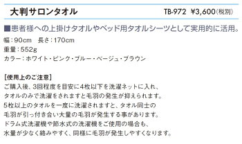 TB-972 大判サロンタオル 患者様への上掛けタオルやベッド用タオルシーツとして実用的に活用。