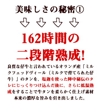安全・安心で【旨み牛タン】をお届けします ・原料は、厳選したオランダ産(ミルクフェッドヴィ−ル(ミルクで育てられた仔牛)のタンを使用 ・塩麹を使った秘伝のオリジナルエキスでつけ込み ・162時間の二段階熟成 製造・販売元 株式会社陣中 閖上工場 宮城県名取市小塚原字辻野27-12 ・ふるさと納税よくある質問はこちら ・寄附申込みのキャンセル、返礼品の変更・返品はできません。