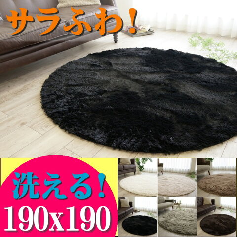 【お得な限定クーポンあり!】 円形 ラグ 洗える カーペット 190 サラふわ ラグマット ムーティ2 丸 丸型 北欧 おしゃれ 絨毯 かわいい シャギー ラグ スノー ホワイト 白 黒 円型 洗濯 サークル じゅうたん 滑り止め 夏用 にも
