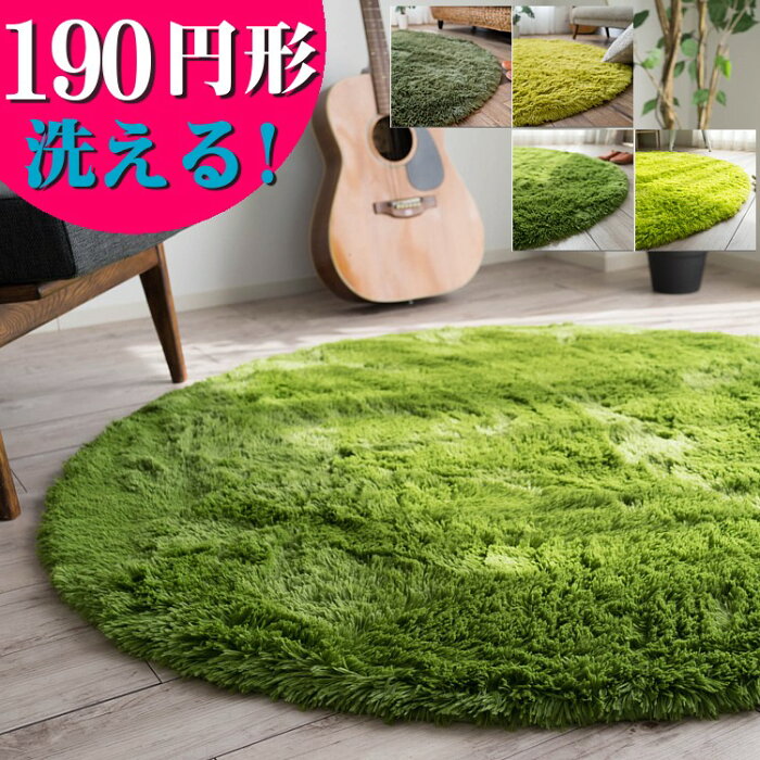 【お得な限定クーポンあり!】 ラグ 円形 洗える 190 ラグマット 丸 癒しカラー グリーン 緑 みどり 毛足35ミリ じゅうたん 超 ロング シャギーラグ 円型 送料無料 カーペット ホットカーペットカバー 絨毯 洗濯可 ムートン 調 夏用 にも