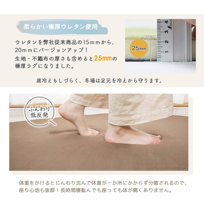 激安サマーSALE!【抗菌 防ダニ】ラグ 円形 低反発 直径200cm 極厚25mm 洗える ラグ 厚手 滑り止め 低反発マット マットリビング 春 夏 用